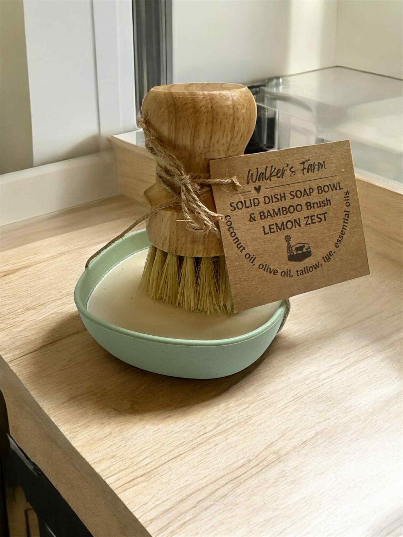 How to Use: -Wet your dish brush, sponge, or cloth. -Rub directly on the soap bar to lather. -Wash dishes as usual, rinse well. -Keep the soap bar drained between uses for longevity.