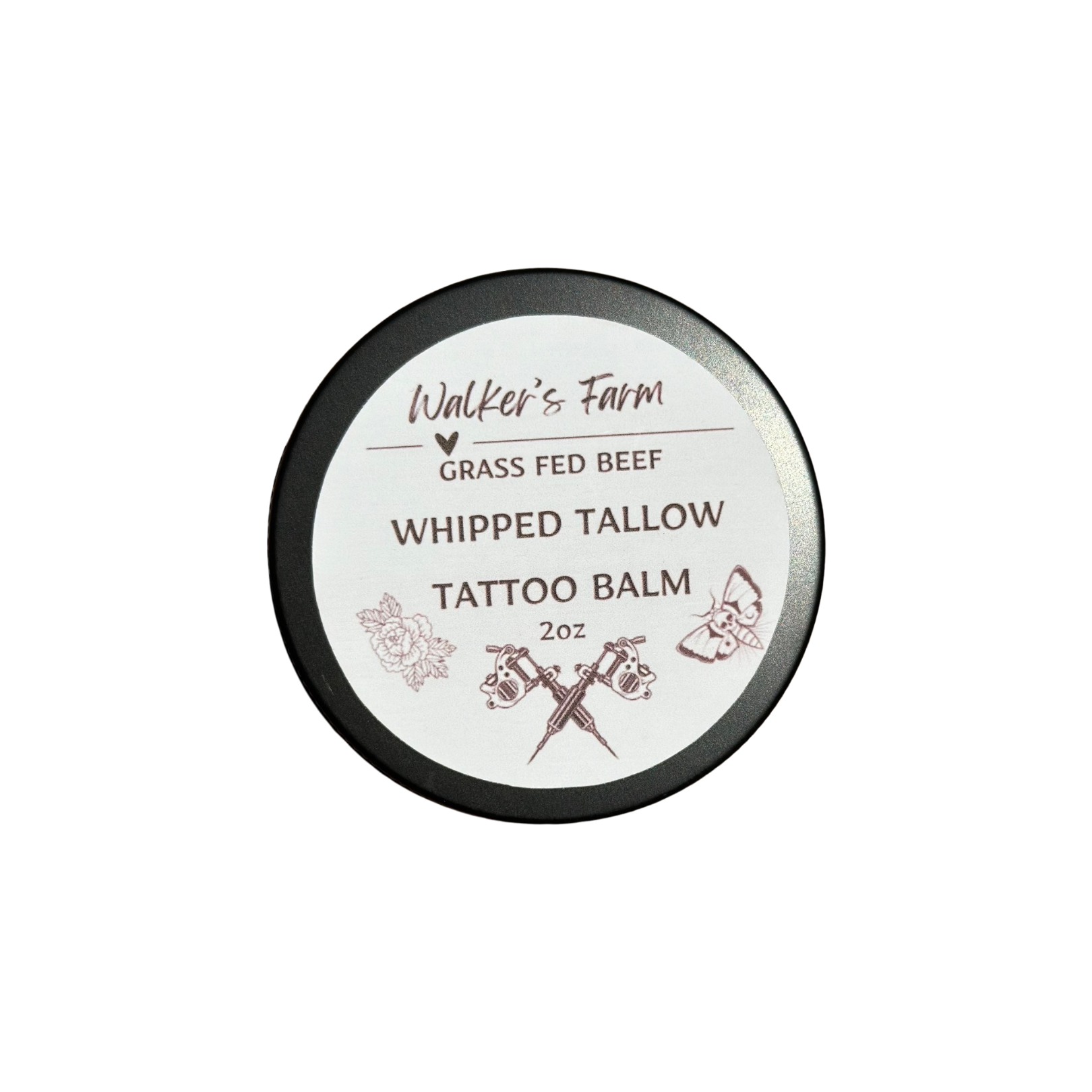 Preserve and protect your living art with our specialized Tallow Tattoo Balm. This thoughtfully crafted blend combines the deep nourishment of grass-fed tallow with protective beeswax, enhanced by the healing properties of chamomile, lavender, and arnica. Designed specifically for tattoo aftercare, this balm locks in moisture while supporting your skin's natural healing process, helping your tattoo maintain its vibrancy and clarity.